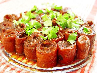 此菜是清朝光绪初年,济南九华林酒楼店主首创,开始名为“红烧大肠”,后经过多次多次改进,红烧大肠味道进一步提高。许多著名人士在该店设宴时均备“红烧大肠”一菜。一些文人雅士食后,感到此菜确实与众不同,别有滋味,为取悦店家喜“九”之癖,并称赞厨师制作此菜像道家“九炼金丹”一样精工细作,便将其更名为“九转大肠”。