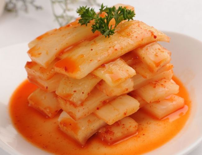 韩国的泡菜文化里,有着深厚的中国儒家文化痕迹。在中国的《诗经》里,出现了“菹”字,它在中国的字典里被解释为酸菜,正是这种腌制的酸菜传入了韩国。主要用蕨菜、竹笋、沙参、茄子、黄瓜、萝卜加上盐、米粥、醋、酒糟、酱等腌制。到了高丽时代,蔬菜的种植技术提高,泡菜中加入了韮菜、水芹菜、竹笋等新鲜的蔬菜,并且出现了用盐水腌制后同汤一起食用的泡菜汤。到了朝鲜时代,泡菜的制作方法开始丰富,原料也更加多样,由于韩国三面临海,水产品充足,开始在泡菜中加入各种鱼、虾、蟹等海产品,到朝鲜时代末期,由于大量种植,白菜成为了比萝卜、黄瓜和茄子更常用的主要原料。此时传进来的辣椒使泡菜的制作出现了革命性的变化。因为辣椒可以去除鱼类制作泡菜时产生的腥味,并让色彩鲜艳,看起来就让人有食欲,所以它被认为是绝佳的泡菜调味品,从而取代了中国传来的用盐腌制的传统方法。