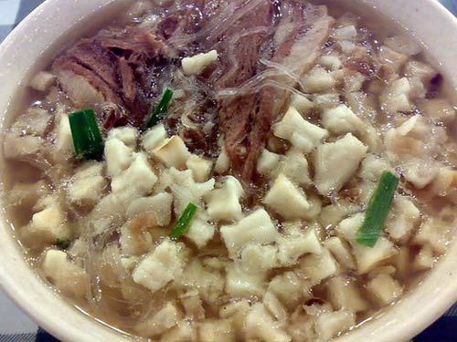 羊肉泡馍,亦称牛羊肉泡馍。古称"羊羹",西北回族风味美馔,尤以陕西西安最享牛羊肉泡馍盛名,北宋著名诗人苏轼留有"陇馔有熊腊,秦烹唯羊羹"的诗句。它烹制精细,料重味醇,肉烂汤浓,肥而不腻,营养丰富,香气四溢,诱人食欲,食后回味无穷。因它暖胃耐饥,素为西安和西北地区各族人民所喜爱,外宾来陕也争先品尝,以饱口福。牛羊肉泡馍已成为陕西名食的“总代表”。网友作词的歌曲《泡馍》近来流行网络,成为羊肉泡馍的主题曲。
