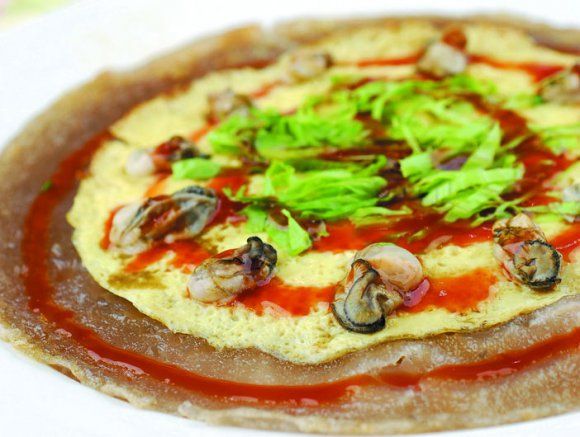 蚵仔煎并非台湾特有小吃,在闽南语系地区(闽南、潮汕)自古有之,是一道常见的家常菜,蚵仔煎据传是一种在贫穷社会之下所发明的一种创意料理,是先民困苦,在无法饱食下所发明的替代粮食,是一种贫苦生活的象征。闽南,台湾,潮汕三地基本同根同源,在台湾它最早的名字叫“煎食追”,是台南安平地区一带的老一辈的人都知道的传统点心,是以加水后的番薯粉浆包裹蚵仔、鸡蛋、葱、香菜等食材所煎成的饼状物。
