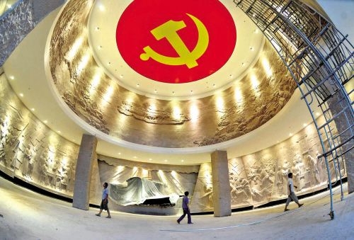 1991年7月,建党七十周年前夕,一座由嘉兴人民捐款320万元兴建的南湖革命纪念馆在南湖东岸拔地而起。这是一座既有民族风格又有时代精神的现代建筑。 步入纪念馆广场,一面长约3-4米的鲜红党旗镶在西南侧的墙壁上,广场四周筑有四个火炬形花坛,中心4个小花坛向心而抱,数千朵盛开的红花将广场映衬得异常灿烂。站在广场仰望纪念馆,只见寓意新中国度过42级台阶巍然向上,入口处状似锤柄的长廊凌晨空伸展,门前6根花岗石圆柱刚健质朴,给人以擎天柱之感。门楣上,邓小平同志题写的“南湖革命纪念馆”七个金字熠熠生辉。面积1820平方米的主楼以黄色墙体和茶色玻璃墙组成线条简洁的对比色调,给人以清晰、明快之感。